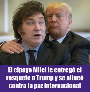 Javier "el Loco" Milei volvió a mostrarse este jueves como seguidor incondicional de Donald Trump, dando vergüenza ajena ante los ojos del mundo, al acompañarlo en el lanzamiento del llamado Consejo de la Paz, una iniciativa impulsada por el presidente yanqui que despertó reparos en buena parte de Occidente. El supuesto Consejo de Paz es encabezado por Trump e intenta imponer una salida imperialista siguiendo su "doctrina Donroe". Milei se suma con entusiasmo a esta farsa internacional, de una ONU paralela, combinando sumisión externa con represión interna.