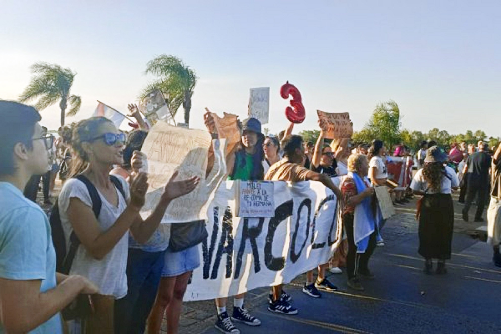 Al respecto, Sofía Cáceres Sforza, del MST, contó a AIM que la acción la promovieron diferentes organizaciones, "para demostrar el repudio a la llegada de Milei, quien no puede pisar ningún lugar del suelo argentino sin que un gobernador le garantice un cordón inmenso de seguridad (como lo hizo Rogelio Frigerio) en Paraná, lo que expresa la debilidad del gobierno".