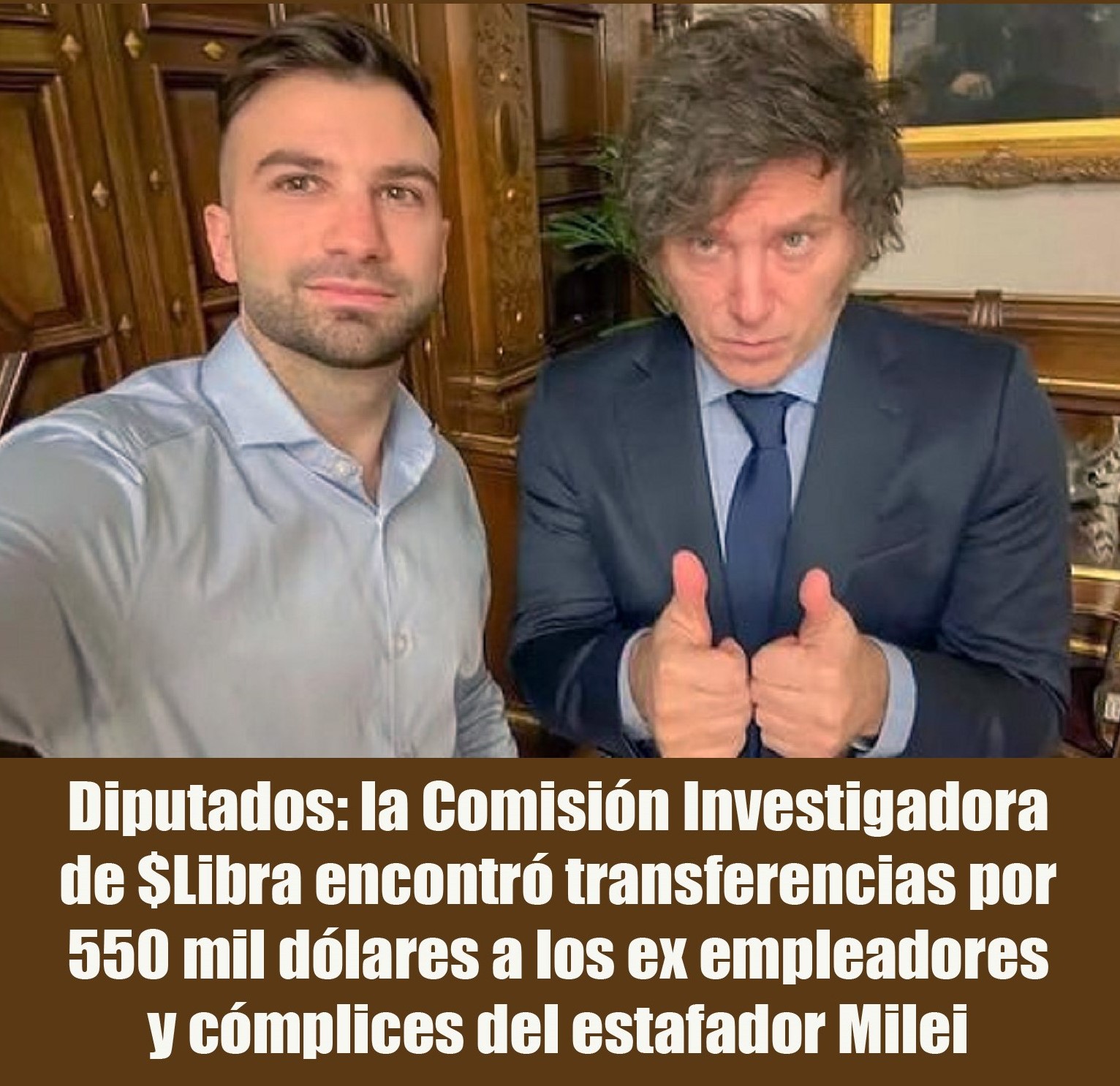 Diputados: la Comisión Investigadora de $Libra encontró transferencias por 550 mil dólares a los ex empleadores y cómplices del estafador Milei