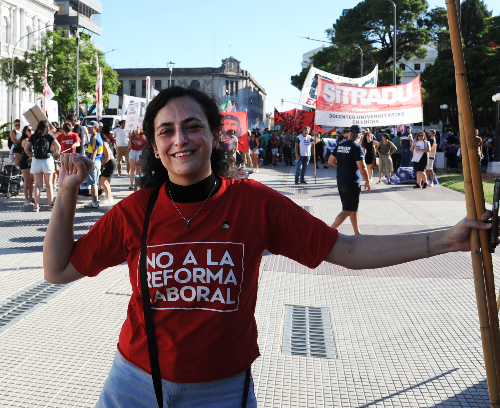 "Impulsamos y organizamos en Paraná la gran movilización contra la reforma esclavista, con una columna propia, que junto al sindicalismo combativo, movimientos sociales, socio ambientales, de la cultura, jubilados, y de DDHH denunciamos la reforma laboral y todo el paquete antiobrero que Milei quiere aplicar en complicidad con Trump, el FMI y los gobernadores", dijo Nadia Burgos.