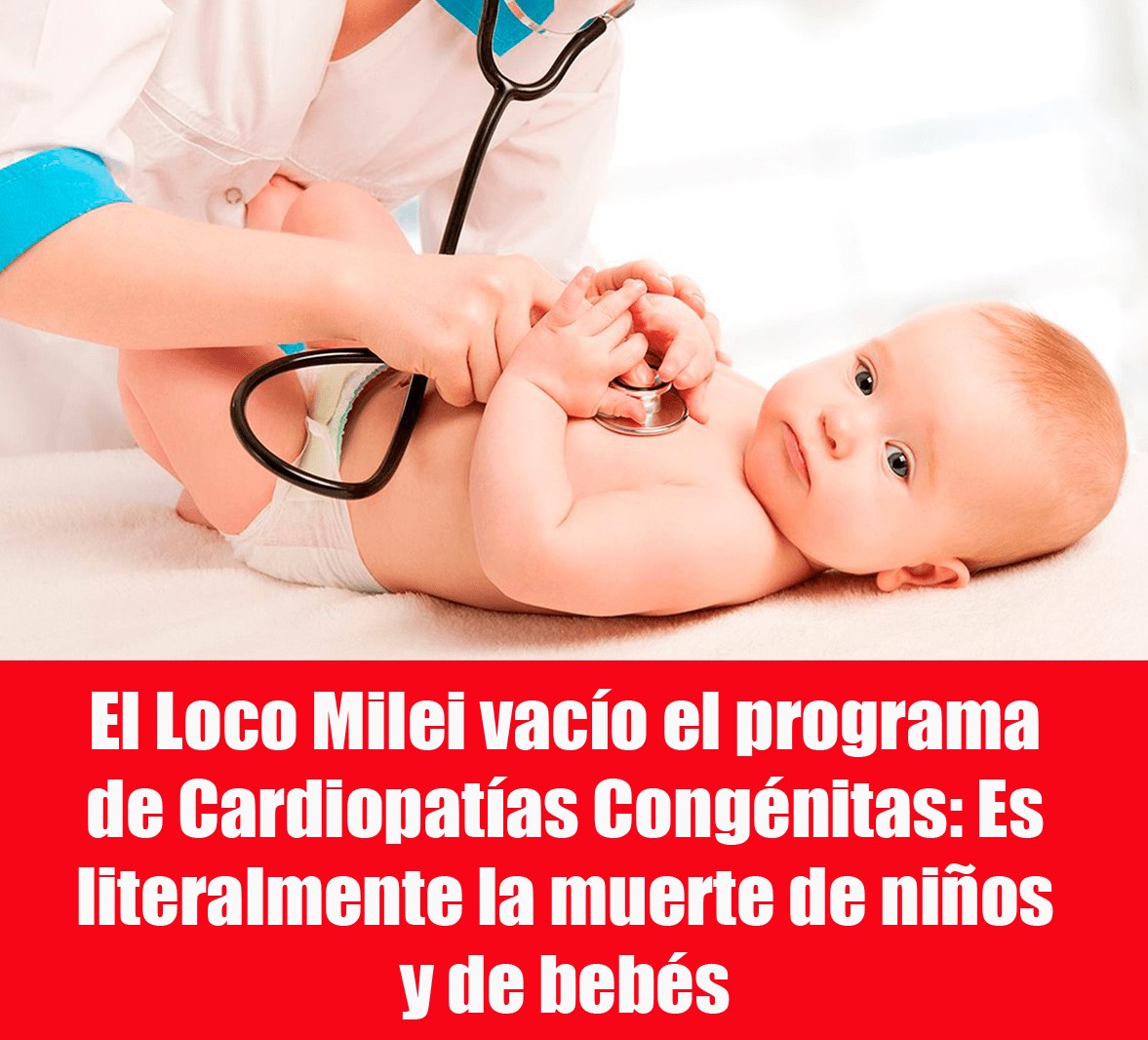 Efecto motosierra. Denuncian que el Ejecutivo despidió a los especialistas que coordinan el plan a nivel nacional. Unos 7.000 bebés nacen con malformaciones cardíacas cada año. El cruel gobierno anarco capitalista de Javier "el Loco" Milei vació el Programa de Cardiopatías Congénitas y miles de niños luchan por sus vidas. En 2023, el desquiciado Milei había votado en contra de la ley.